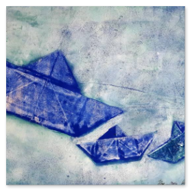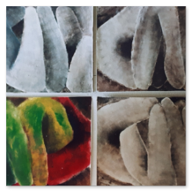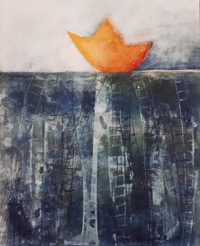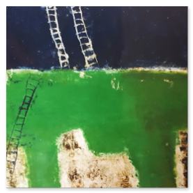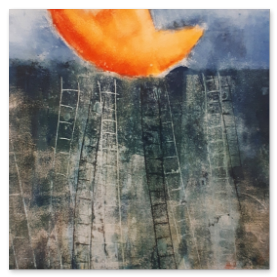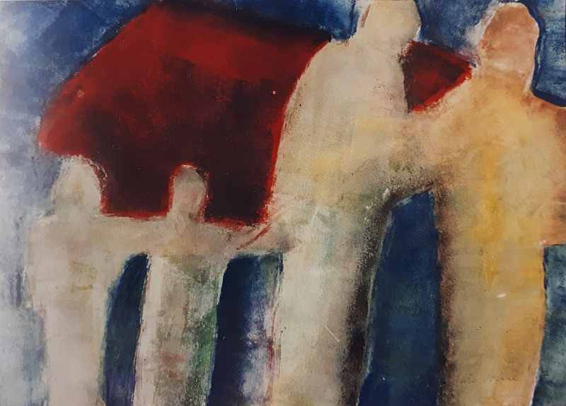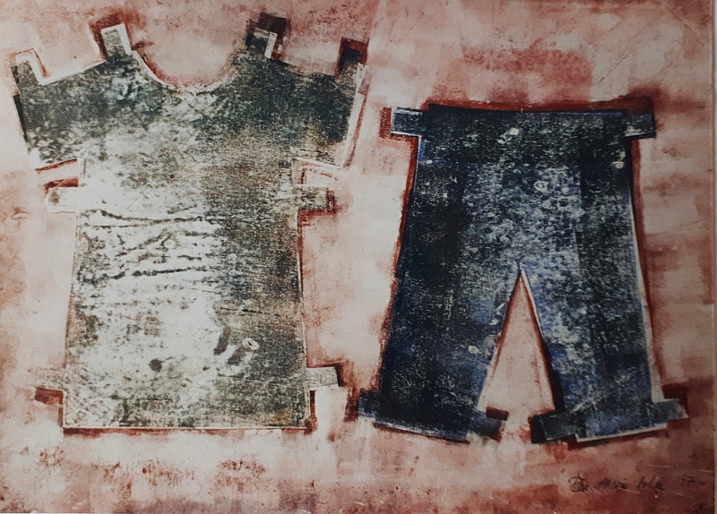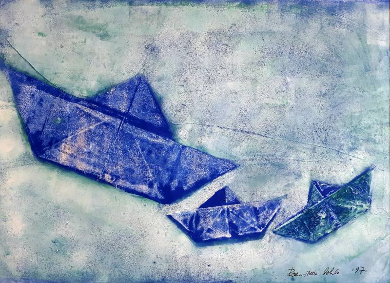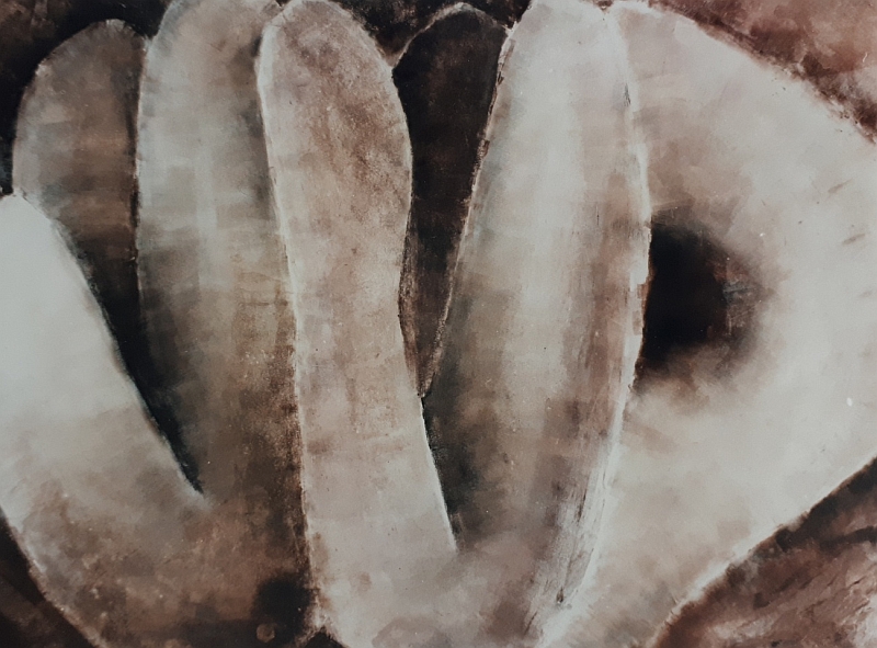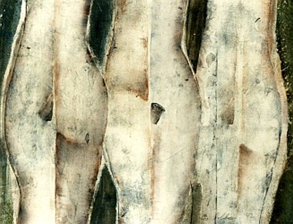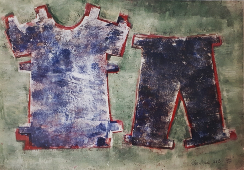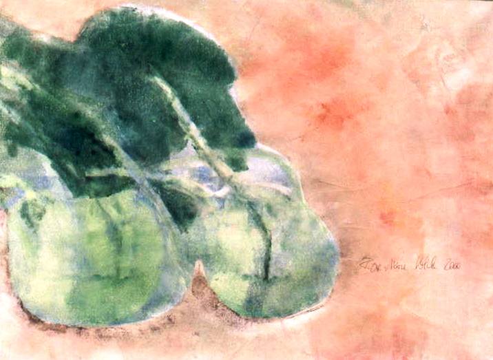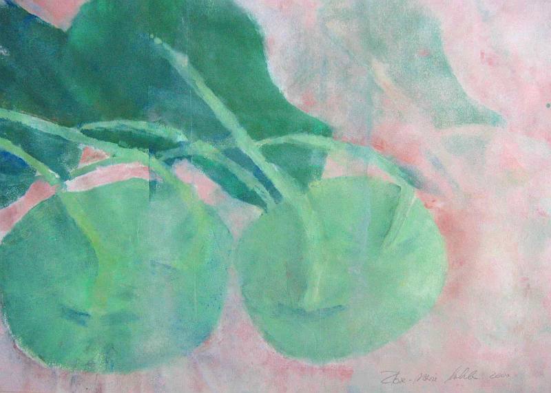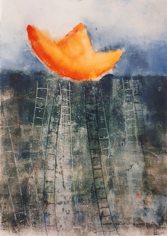 Monotypien sind Einmaldrucke. Farbe wird auf eine Glasplatte aufgetragen und mit Papier "abgenommen". Reste von Farben eines Bildes können in das nächste Bild hinein genommen werden. Mich fasziniert das Ergebnis, denn neben der Seitenverkehrung sind auch immer Spuren früherer Farbaufträge zu sehen. Bilder können so einen freskenhaften Charakter bekommen. Hier eine Auswahl aus verschiedenen Serien - Weiberleiber, Nährstücke, Leitervariationen, Hemden, Abstraktionen.