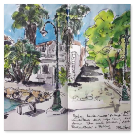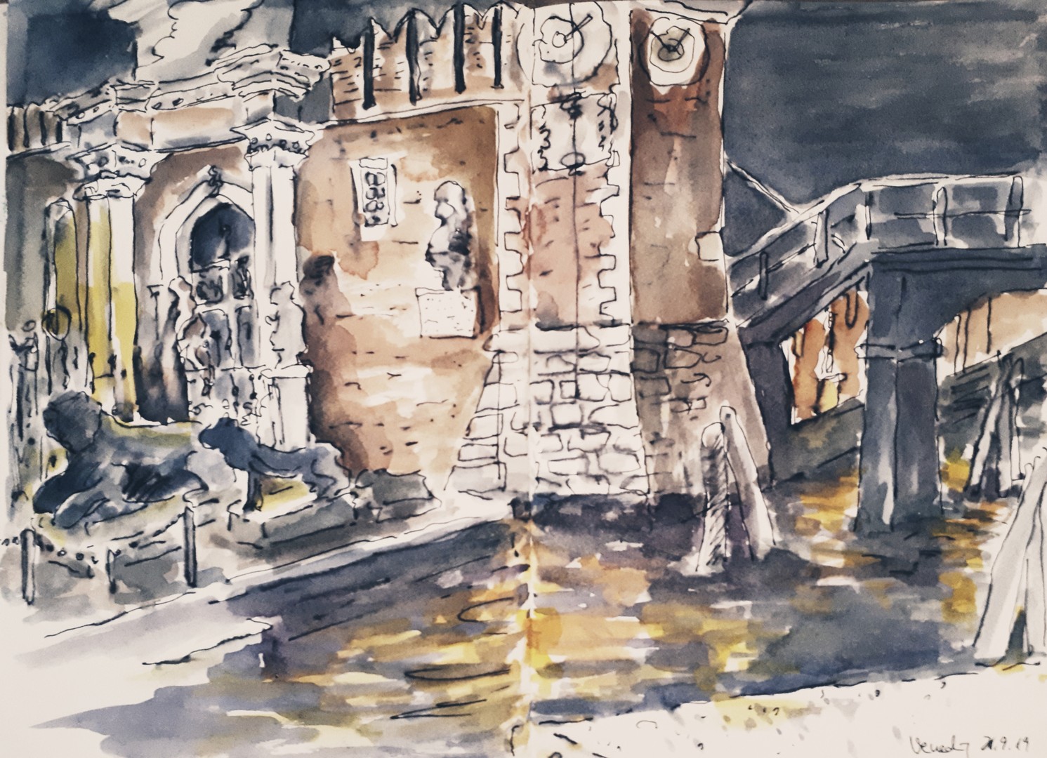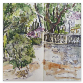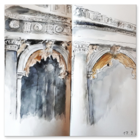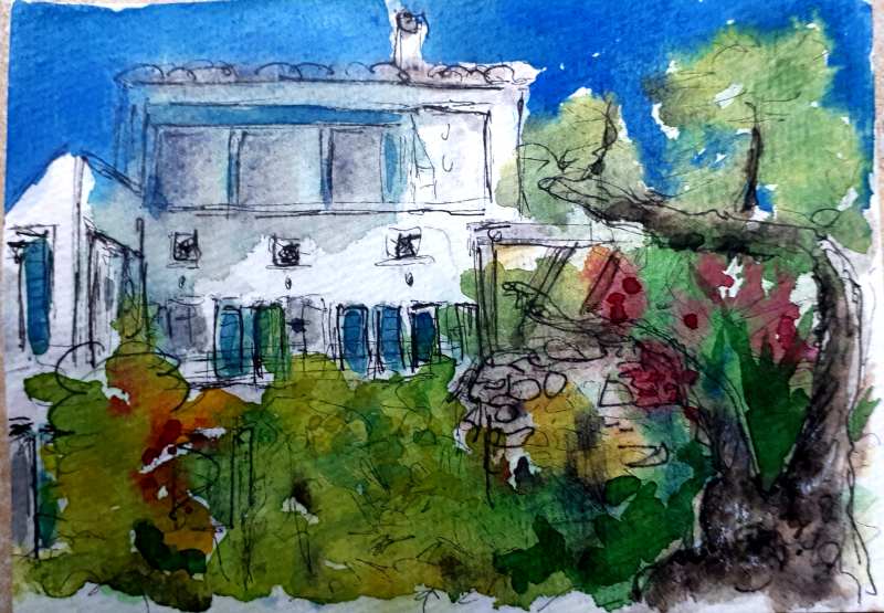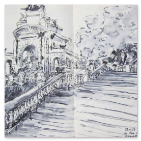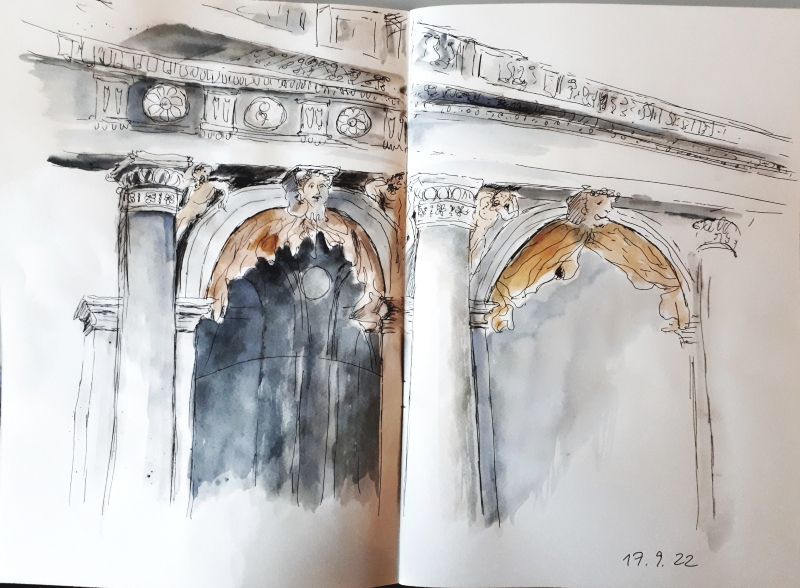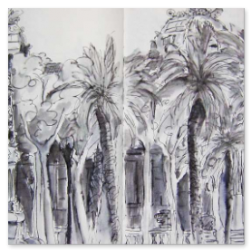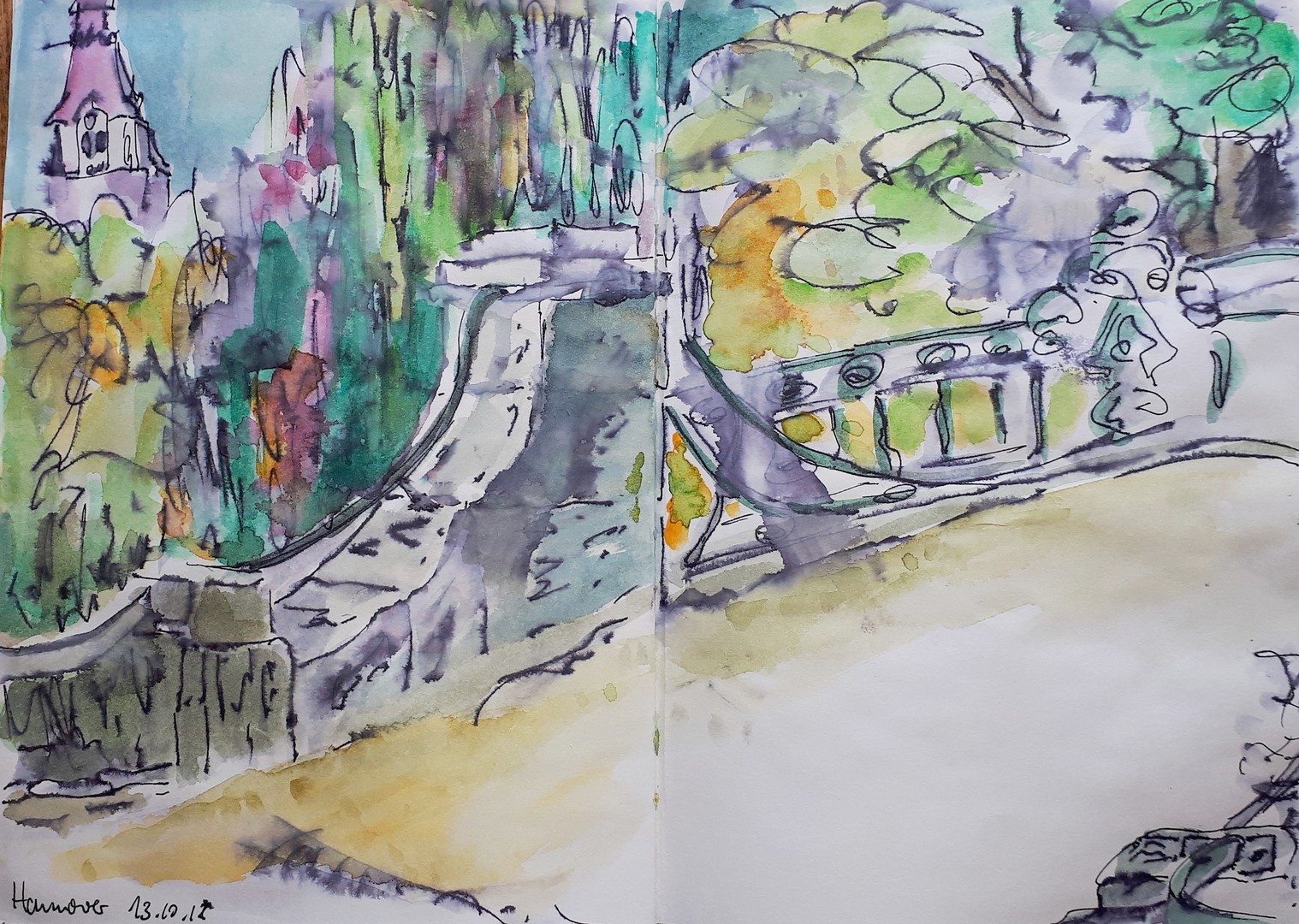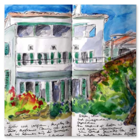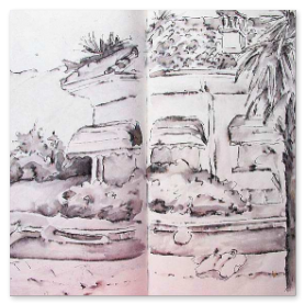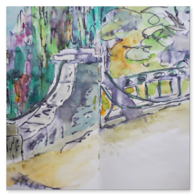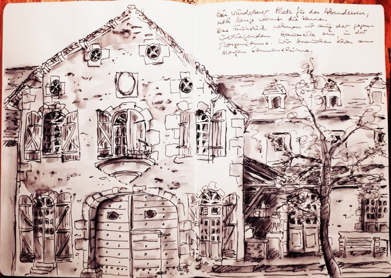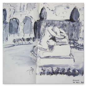 Viele meiner Skizzen sind auf Reisen entstanden: in verschiedenen Städten wie Venedig, Barcelona, Florenz, Athen, in Frankreich, in Griechenland, am Lago Maggiore, am Gardasee, an der Nordsee, an der Ostsee. Es sind intensive Erinnerungen an die Situationen, in denen ich dasaß und die Eindrücke im Skizzenbuch festhielt. Hier eine kleine Auswahl: